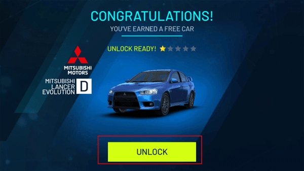 4、完成新手指导后,系统自动解锁一款新汽车皮肤,上方星星标识代表该皮肤的解锁进度条。
