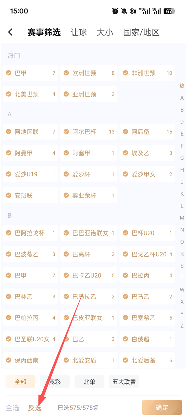 2、点击反选,然后勾选感兴趣的竞赛,例如“欧洲世预”