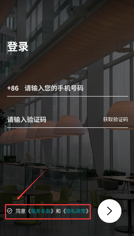 3、需勾选同意服务协议和隐私政策后,方可进入下一步操作。