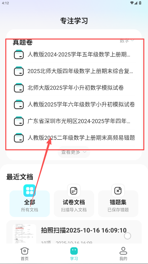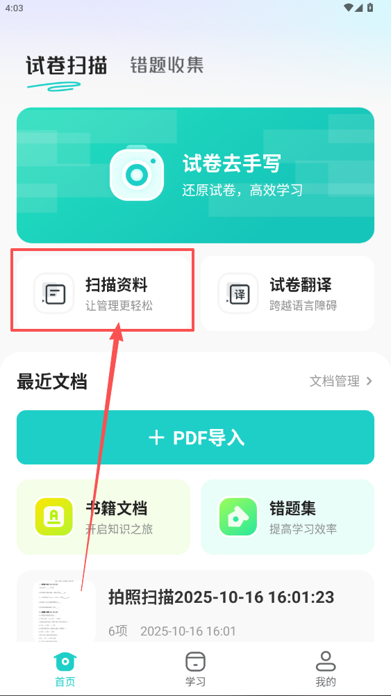 1、打开应用即可启动扫描功能,对准目标试卷,便捷捕捉卷上错题内容。