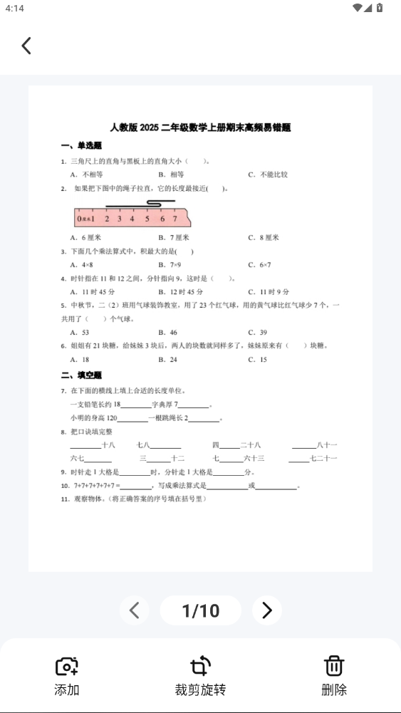 一键消除试卷上的手写痕迹,还原空白状态,助力反复练习同一份试题。