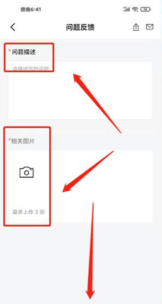 进入问题反馈界面,填写问题说明、上传相关图像,选择【提交】。