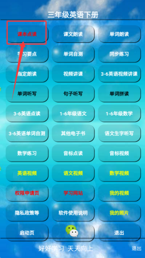 2、选择教材对应单元和页面进行点读学习,触控屏幕任意英文句子即可听到标准美式发音示范。