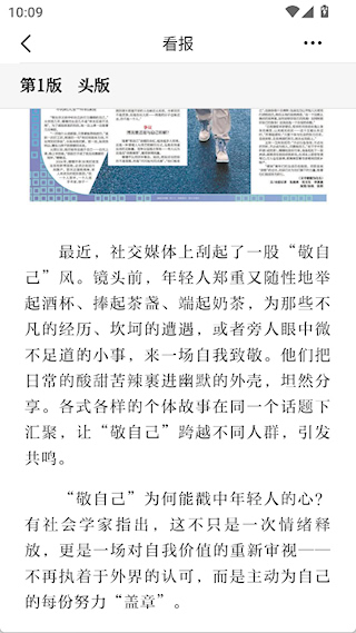 2、之后会看到今天的报纸,通过底部按钮切换版次、查看目录和往期内容