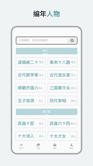2、独创同期人物对比功能,可并行展示多位历史人物的生平轨迹,清晰呈现不同人物在相同历史节点的人生阶段。