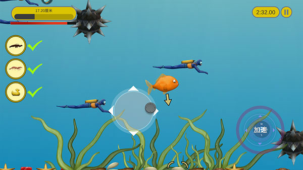 1、以 “大鱼吃小鱼” 为核心思路,需持续喂养小金鱼,使其不断进食,最终成长为能吞噬直升机的巨型海怪。
