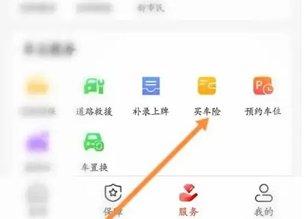 2、 进入服务功能页面后,从列表内定位并轻点“买车险”这一选项。