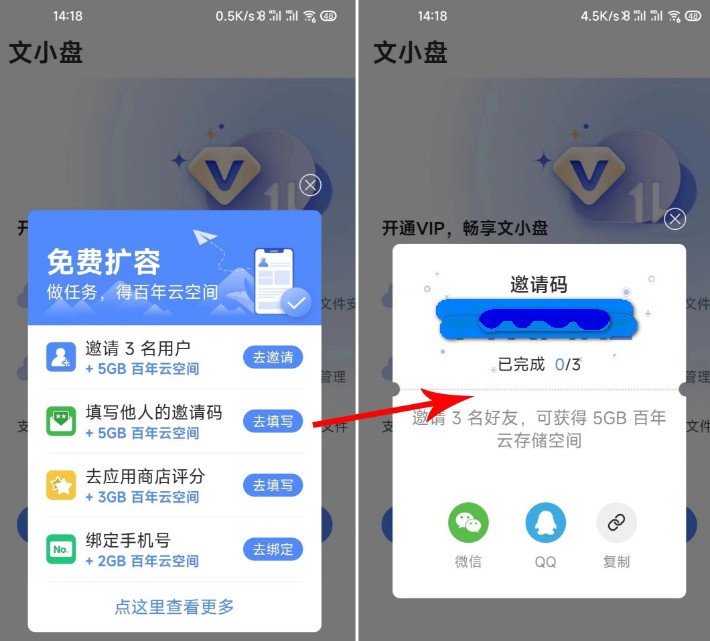 1、 完成程序安装与账户登录即可获赠初始存储容量,若需扩展空间可通过完成简单任务实现,例如填写任意邀请码即可增加5G容量,操作流程十分简便。