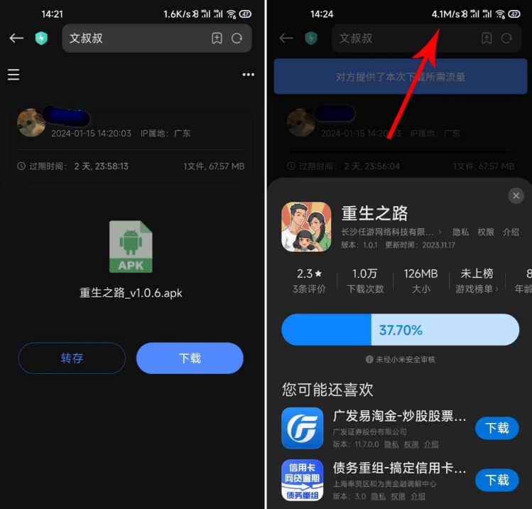 3、 接收方通过打开生成的链接即可直接获取文件,实际测试显示传输速度表现良好,整体操作流程简洁高效。