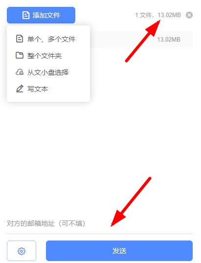 2、 完成文件选择后点击发送按钮,系统将生成下载链接与分享二维码,同时提供取件码发送选项