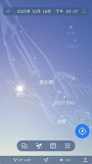 Sky Tonight是一款功能丰富的天文类应用,适合初学者与专业观星者使用,界面设计简洁美观,底部导航菜单不干扰核心内容,单手操作便捷,提供互动星图、增强现实模式等功能,将摄像头对准天空会显示对应方向的天空模型,在看到不认识的星星时能快速识别。