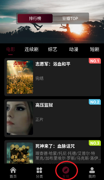 顶部搜索栏:点击进入搜索页面,快速查找影视内容