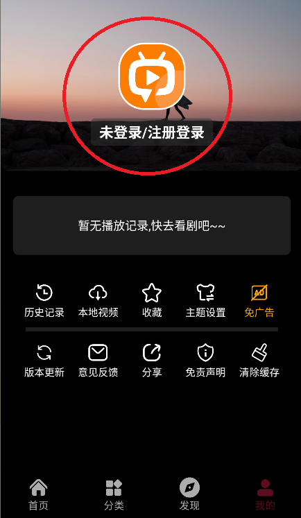 历史记录区域显示“暂无播放记录,快去看剧吧~~”