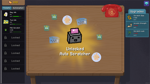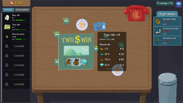 4、赢取的奖励可兑换多种升级道具:提升幸运值、简化刮卡操作、增加收益倍数等丰富功能任君选择! 收集璀璨钻石,完成重生挑战,选择永久强化项目,打造属于你的终极财富构筑。