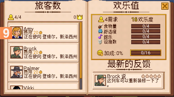 2.乘客在抵达目的地时会支付车费,如果娱乐或事物让他们非常满意,他们甚至会多付一点小费来给予你列车服务进行评价。要注意你的乘客在评论区的一些提示,继而进一步让他们的旅行更愉快。