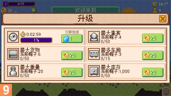 使用获得的金币可以升级列车的各项属性,提高运行效率与收益。