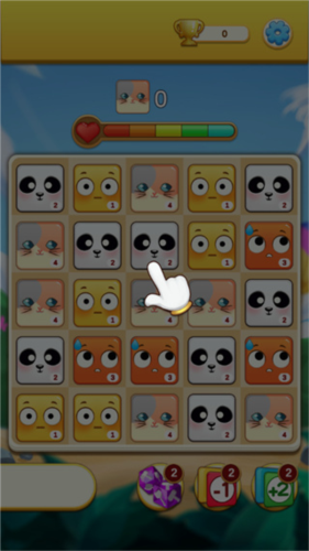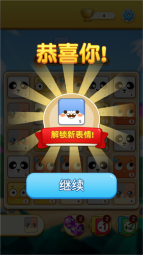 1、双击打开表情大作战游戏即可游玩,通过滑动两个表情包,当三个或者三个以上相同的表情包在一起将会进行合成;