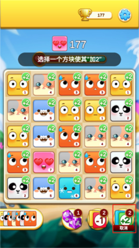 4、通过右下角右边的按钮来选择一个表情包来将表情包下方的数字加2;