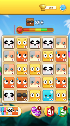 5、当滑动表情包没有进行合成,上方的血条会减少一格;
