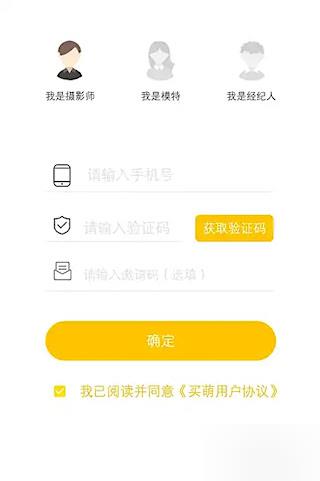 1、 通过官方应用商店获取该平台客户端,完成安装后启动并点击注册账户。初始界面会提供摄影师、模特与经纪人三种身份选项,需根据自身角色进行选择。
