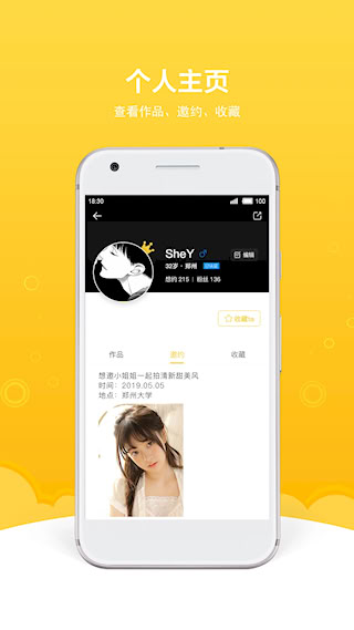 4、 动态页面支持模特与摄影师展示个人作品、发布具体邀约。可关注收藏心仪的合作伙伴,形成互动社群,便于长期关注其最新创作动向与合作机会。