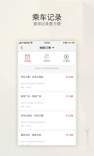 2、地铁购票系统生成动态二维码,支持在自动售票机扫码支付。购票记录自动同步至行程列表,可随时查询历史购票信息与对应乘车路线。