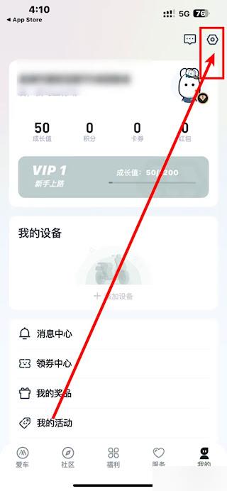 1、在设备上启动爱玛出行应用,轻触界面中的【设置】选项,进入功能配置区域。