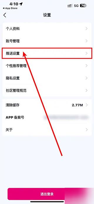 2、页面跳转至系统设置菜单后,找到并点选【推送设置】一项,对消息通知进行管理。