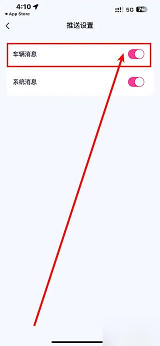 3、在推送管理界面内,找到【车辆消息】选项并将其状态激活,完成整个配置流程。