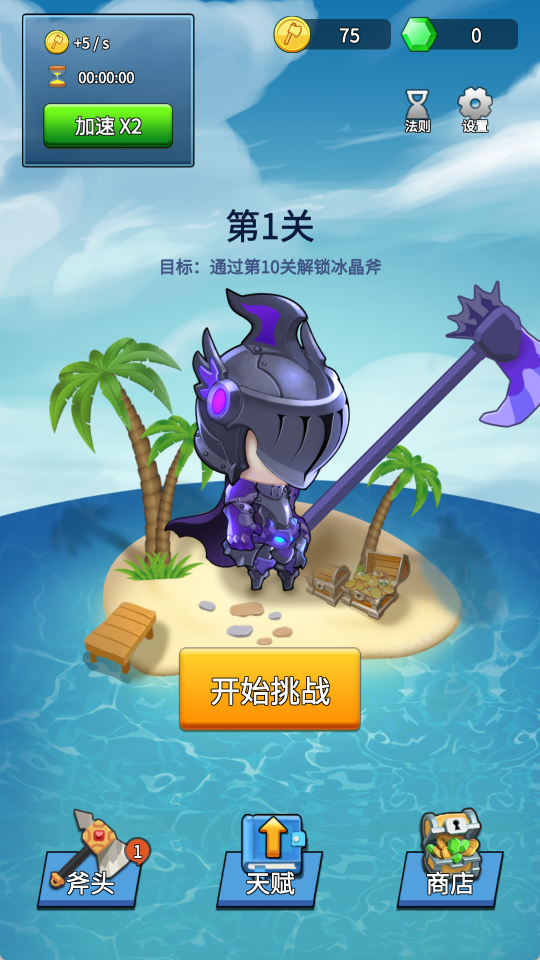 5、宝箱与隐藏任务:关卡中随机刷新宝箱,可开出稀有斧头碎片,完成隐藏任务解锁特殊buff,提升闯关效率,增加探索乐趣。