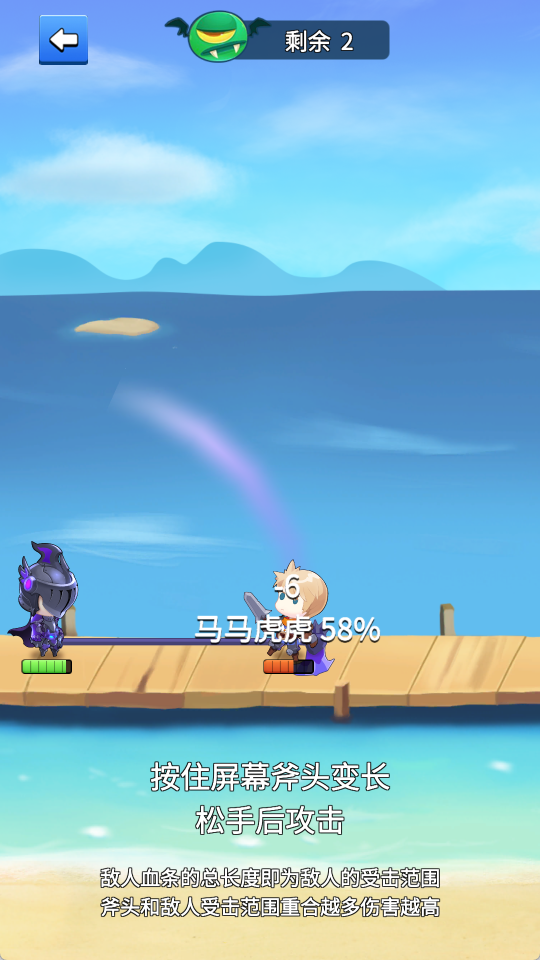 2、按住屏幕让斧头变长,直到可以攻击到敌人后松开释放攻击