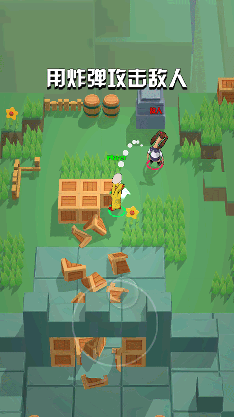 1、炸弹对战:玩家利用炸弹攻击对手或破坏场景,需掌握抛物线投掷机制,巧妙炸飞对手或耗尽其血量。