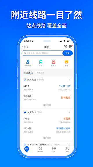 1、实时显示公交车当前位置与预计到站时间,提供完整经停站点列表。帮助掌握车辆运行状态,减少候车不确定性。