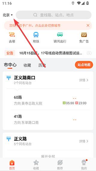 1、打开掌上公交APP,左上角图中位置可选择所在城市