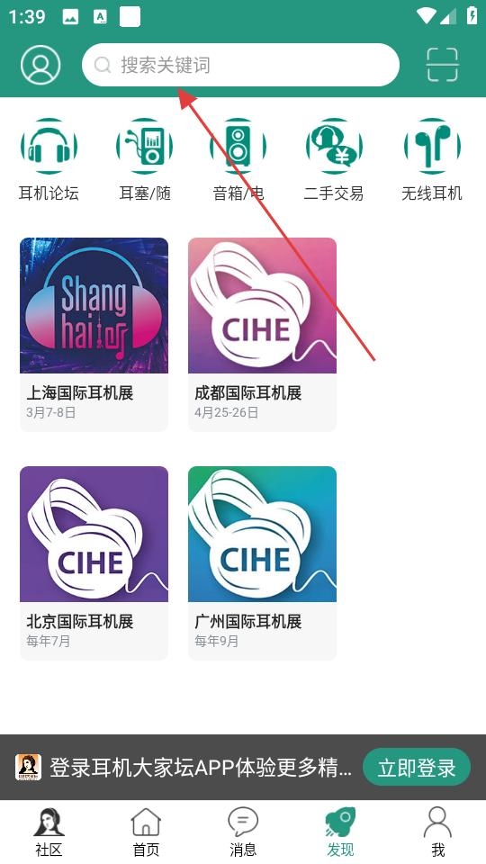 1、在发现页面的搜索框内键入关键词,例如特定耳机型号或行业展会名称,系统将呈现相关的资讯与讨论内容。