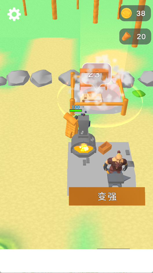 1、砍伐树木:滑动屏幕控制斧头轨迹或点击控制伐木节奏,根据树木特性,精准操作避开树枝,砍倒不同种类的树木获取木材。