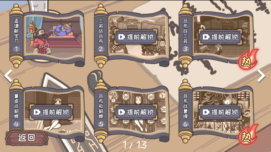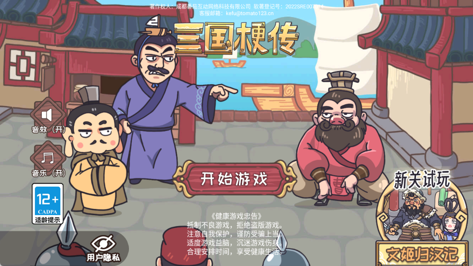 《三国梗传》是一款以三国为背景的休闲益智解谜游戏,采用卡通风格,将经典三国故事与现代网络热梗巧妙融合,打造出一个魔性、搞笑的另类三国世界,玩家在游戏中需通过点击、拖拽等操作解开各种脑洞大开的谜题来推动剧情发展,每个关卡都有独特的解谜主题和无厘头剧情,让人忍俊不禁。