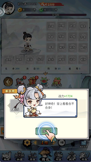 1、职业选择:有剑仙、道士、法魔和妖王四大职业,每个职业技能与属性独特,玩家可依喜好选角,培养专属最强英雄。