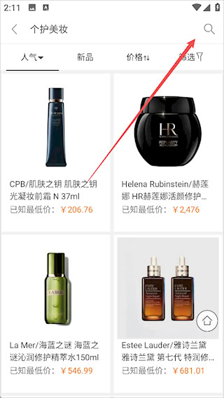 3、点击界面右上角的搜索图标,激活商品关键词输入框。