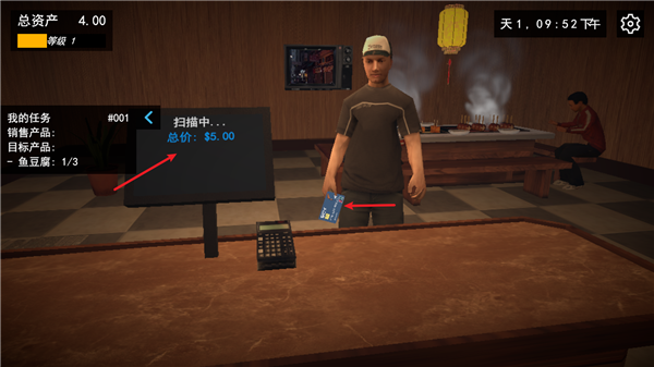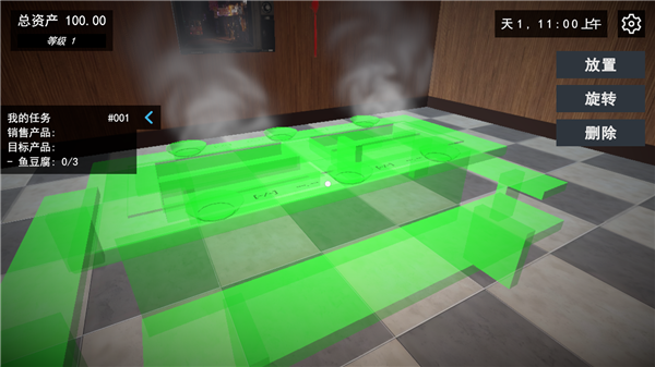 前期给了我们100初始资金,全部用来买当前已经解锁的菜品。普通桌子4个格子,买2箱鱼豆腐2箱香菇,刚好96元。然后前期是不用回家的,因为如果你正确的规划了资金,那么每日的收入正好让你在打烊之后开始布置餐厅。
