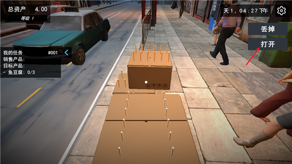 4、进货之后,等待一段时间货物就会到门口,点击拿起然后将其打开。