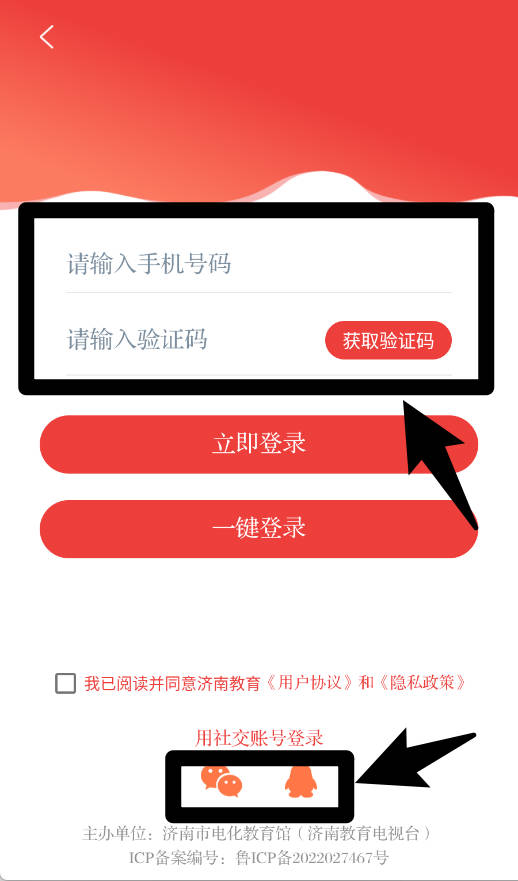 1、进入时需输入手机号并获取验证码,也支持社交账号快捷登录方式。
