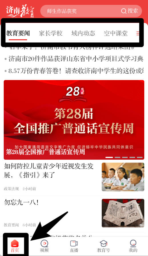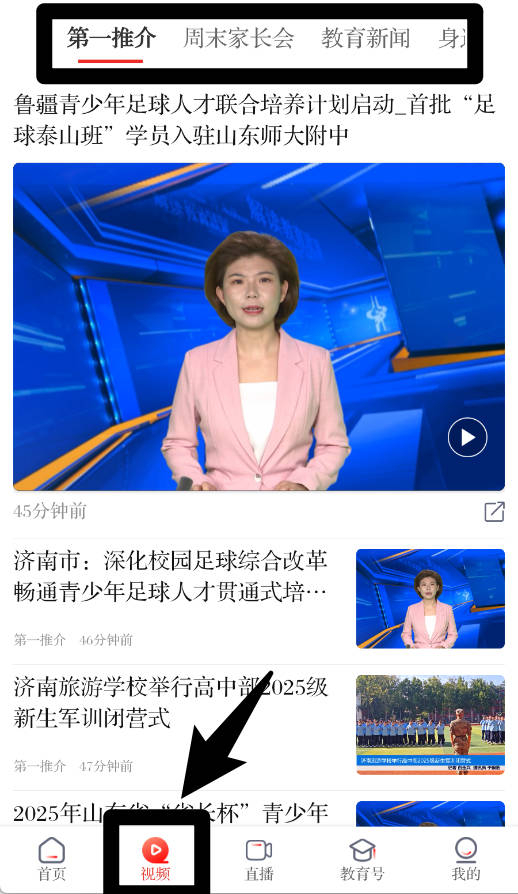 3、进入视频栏目,可以观看教育要闻、第一推介及周末家长会等各类视频资讯。