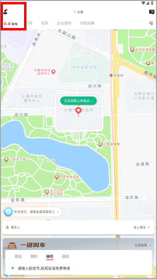 1、打开旗妙出行 APP,点击首页左上角的 “我的” 图标。