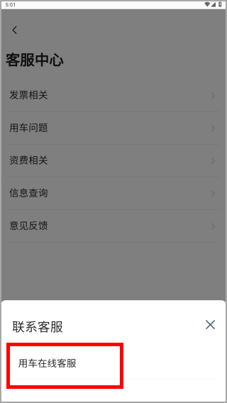 4、在弹出的选项中,选择 “用车在线客服” 进入沟通界面。
