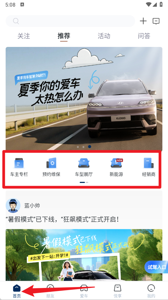 2、在首页,用户可以浏览推荐资讯、查看车主专栏、进入车型展厅或新能源专区,获取最新汽车资讯与服务。