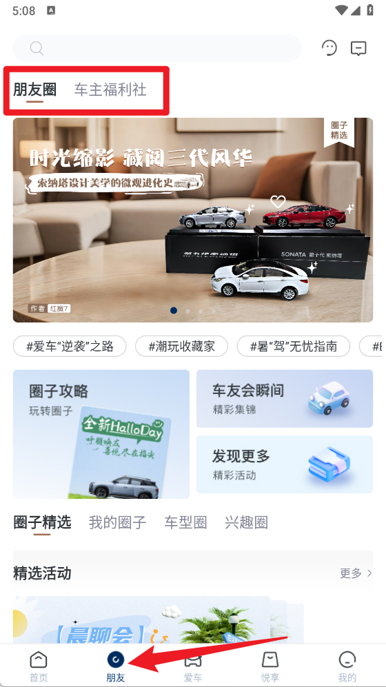 3、在朋友圈模块,浏览圈子攻略、车友会瞬间、精选活动等,参与互动交流。