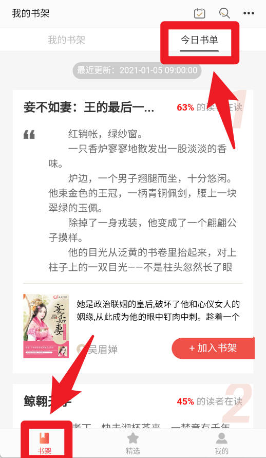 3、在今日书单中,可以发现系统推荐的热门书籍和最新更新内容,丰富阅读选择。