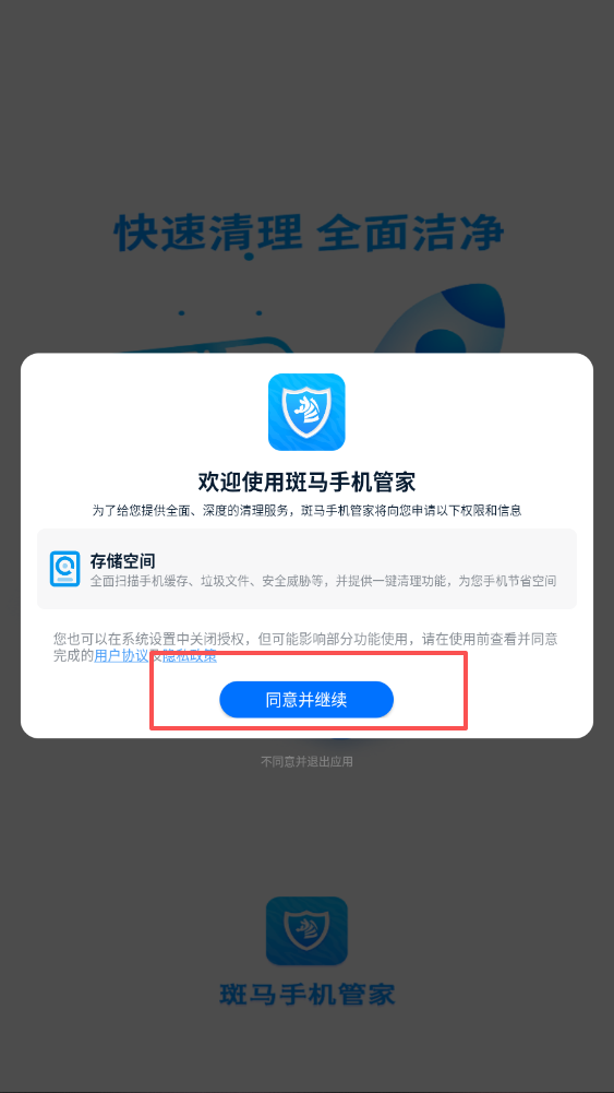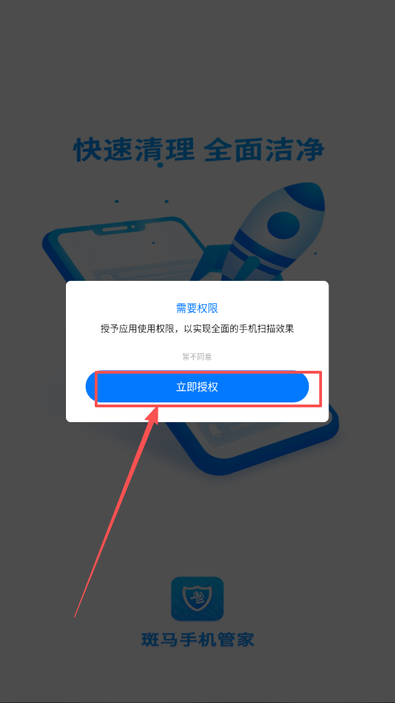 1、双击斑马手机管家app,进入软件,跳出页面点击“立即授权”