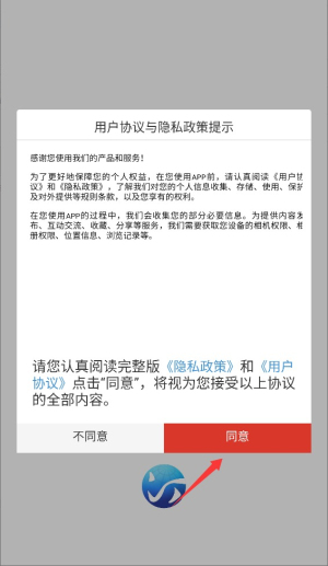 1、初次启动应用时,需阅读并同意用户服务协议及隐私条款,点击确认后进入主界面。